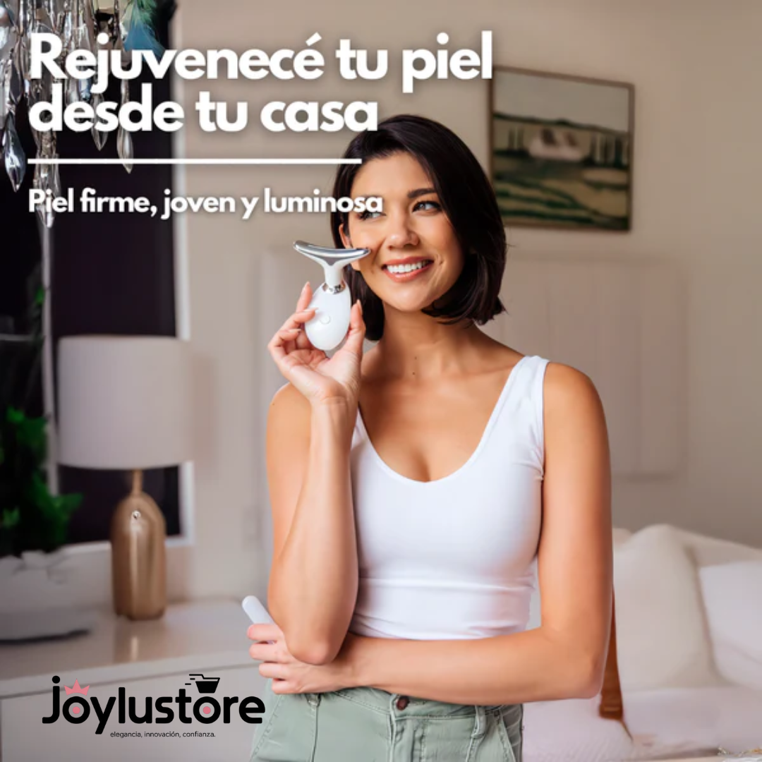 El Masajeador Facial Led 7 Colores combina terapia de luz LED, calor y vibración para darle a tu piel una apariencia más firme, luminosa y joven, sin salir de casa.